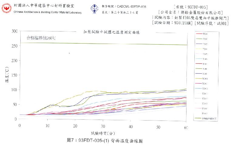 DIN 1634-1:2000-03之六十分防火測試,爾後於2004年4月正式通過CNS 11227甲級60分鐘防火測試